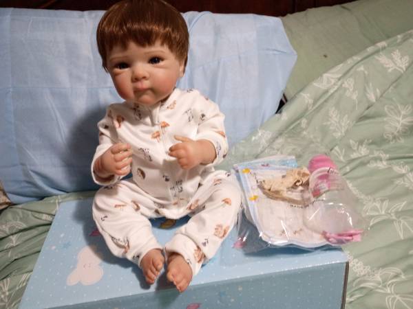 I bought them but I can't see them beautiful babies sitting on the dresser they are 18 inches long and they are newborn comes with toy and diaper and birth certificate and bottle pacifier still in...
