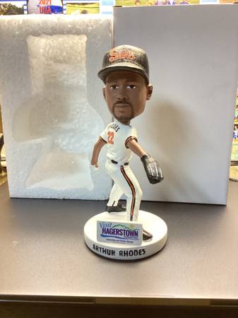 Qty. of 2 Arthur Rhodes bobbleheads (received at Hagerstown Flying Boxcars game where Arthur was the pitching coach this year, but the bobbleheads are in the image of him pitching for the Hagerstown Suns)