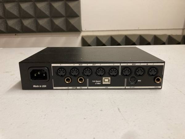 For sale here is a Mark Of The Unicorn (MOTU) Micro Express USB MIDI Interface. It has served me well and works great. I recently has to upgrade to a new version in order to work with my new Apple computer, but this one would be great for an Intel-based mac or PC. There may still be some adhesive residue on the bottom from some Velcro I had attached. This is for the unit only, but I will include an AC power cord upon request. Users will need a USB printer cable to connect to a computer.