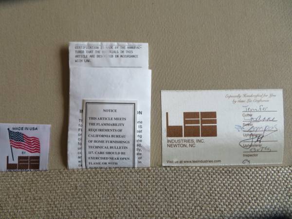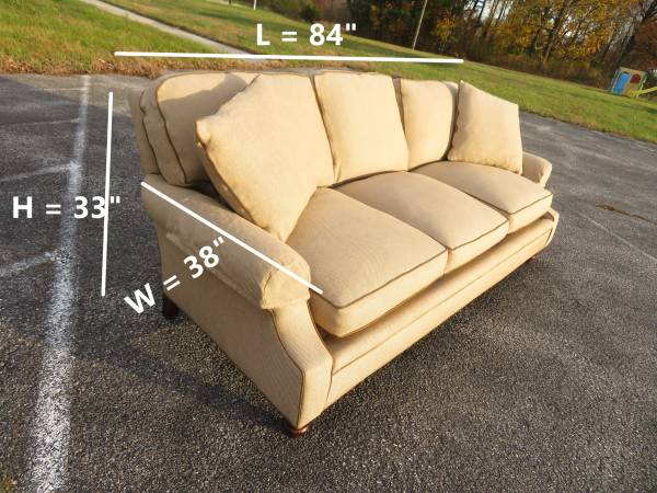 Gorgeous Beautiful Very very soft comfortable in very good condition Lee industries high end Sofa made with all the best materials and craftsmanship. Seat cushions and Back rest pillows all come off. All the seat cushions, back rest pillows and throw pillow covers can be unzipped/taken off for washing. Seat cushions, back rest pillows and throw pillow were all thoroughly washed and deep clean before listing. The whole Sofa was thoroughly cleaned, washed and deep cleaned before listing. The Couch is spotless in terms of clean and cleanliness. Immaculately clean. No rips, tears, wholes, weird smells or anything of the like. From a pet free smoke free home. This is your chance to get a high end very beautiful and comfortable sofa for a fraction of the cost.