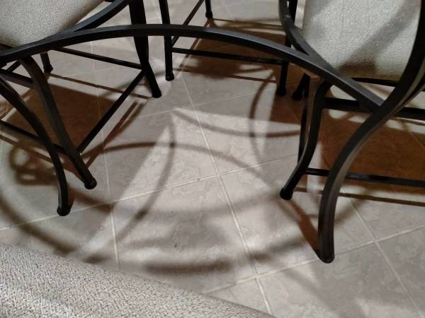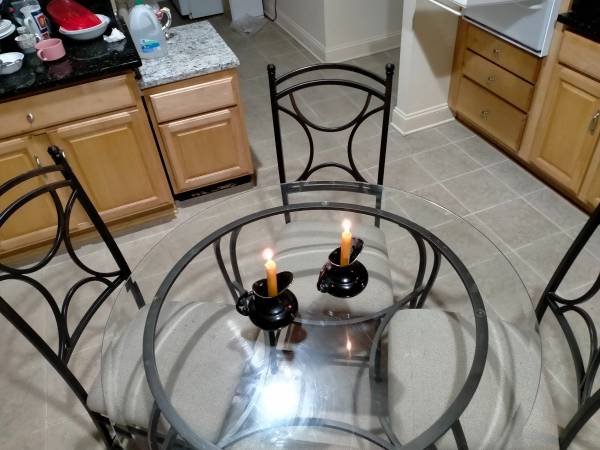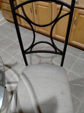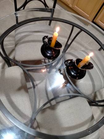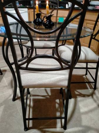 GLASS TOP IRON ROUND TABLE WITH 4 CHAIRS Glass 42" ROUND 29" HIGH Dining Table w/ 4 Chairs LIGHT WEIGHT Iron Frame table and chairs sturdy lightweight Glass is neat and clean Beautiful REASONABLE...