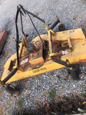 6’ Bush Hog brand 3 pt. Finish mower, fair/good condition. Missing belt covers and needs PTO shaft