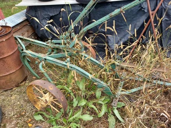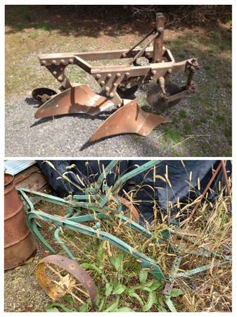 Lot of 2 John Deere Plows. Both are 2 bottom. Model 412 3 point plow & model 52 trailer plow. The 412 plow is complete and has older blacksmith type bottoms and the trailer plows have no bottoms. Bottoms on the 412 plow are possibly from the 52. Would like to sell together but will separate
