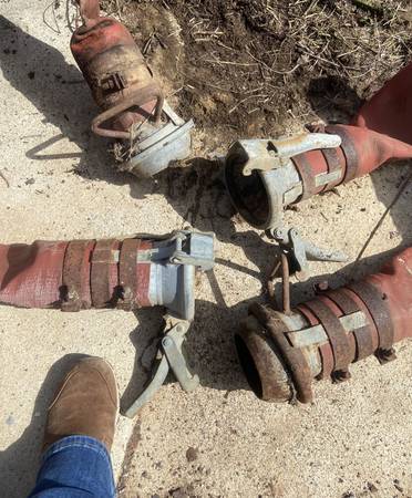 We have 2 pairs of older metal hose couplers for sale. There are 2 male and 2 female ends. They were used with hoses that were for pumping out pits to our slurrystore. The last they would have been used was back around 1995 when we got out of hogs.