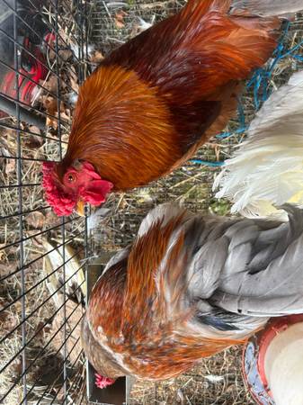 $8 each They are around 9 months old farm raised good breeders or nice oven roosters