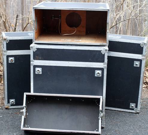 I have 4 road flight cases. Exterior dimensions are 33 3/4" tall, 30 1/2" wide and 14 3/8" deep. They originally had Altec 311-90 horns mounted inside. You can reload them with those or use them for many other kinds of musical gear. Pickup only. The posting is for 1 case at $75. Buy one or as many as you like. Very good condition, from a smoke free environment.