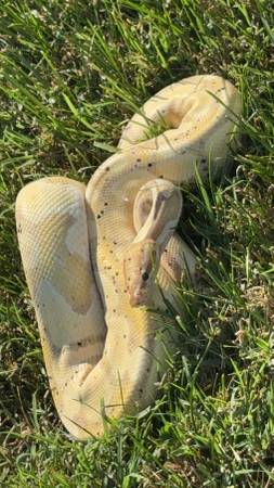Ive got a Banana het pied 100% ball python hatched mid 2021. looking to rehome, he can go alone or with his 40g breeder tank with heat pad, thermostat and done light as well as hide, hes very friendly easily handled, could also be open to trades. Text preferred for discussion. 2two3 two78 7four38