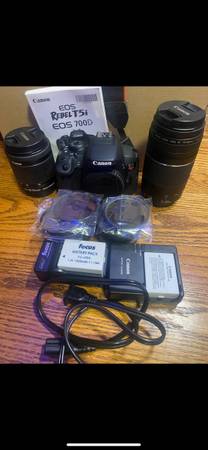Selling a Canon EOS Rebel T5i/EOS 700D camera(canon T5i). Included are the camera body, two lenses (EF-S 18-55mm and EF 75-300mm), battery, charger, strap, and the original manual. Great for anyone looking to get into photography!